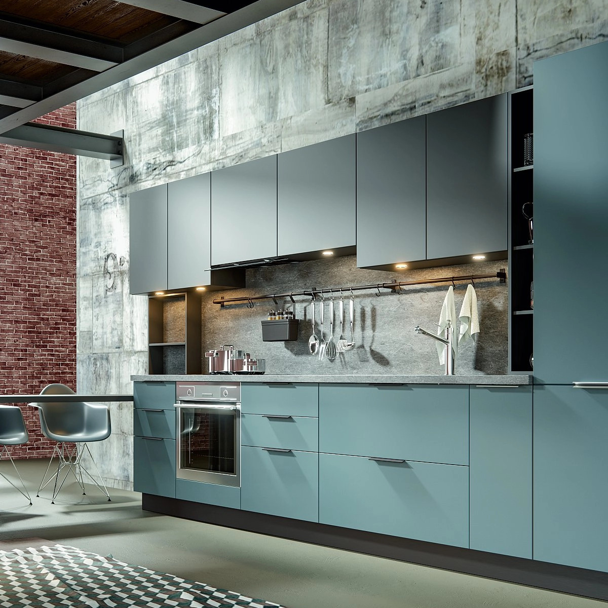 Строгая геометрия и функциональные детали для современных интерьеров. Выразительные сочетания фактур создают брутальный акцент в пространстве. Фасады доступны в трендовом матовом и эффектном глянцевом исполнении.
