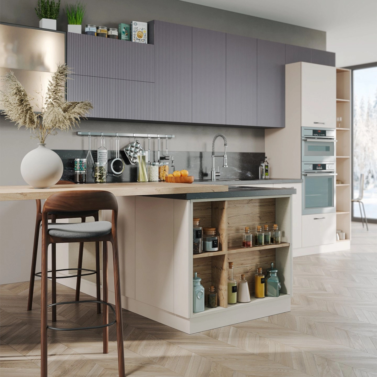 Кухни про тактильность и игру света. Вертикальный рельеф фасадов добавляет динамику, визуально облегчает пространство и делает привычные формы заметно интереснее. Такие фасады легко вписываются в разные стили, освежая классические и минималистичные интерьеры.